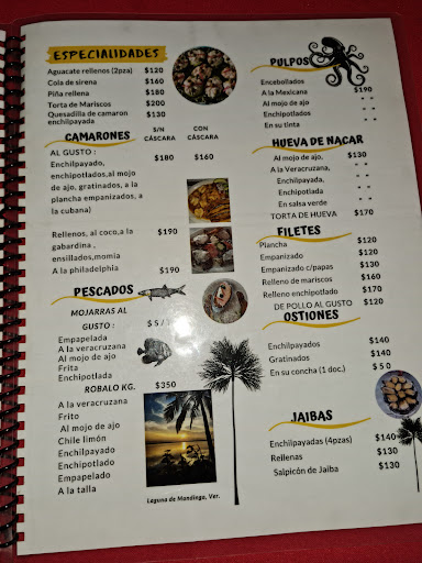 Read moreEl mejor lugar en la laguna de Mandinga para comer mariscos estilo Jarocho, unicado a la orilla de la laguna con vista al hermoso Manglar, los alimentos son de PRIMERA y EXQUISITOS, no hay a cual irle, me atrevo a sugerir las manitas de cangrejo y la.minilla de Cazón como entrada y como plato fuerte la Hueva de Lisa frita, arroz a la tumbada y los Pulpos encebollados DELICIOSOS¡ quieten sorprenderse? pidan una Langosta..SI también hay langosta en Veracruz, la sacan del arrecife de Antón Lizardo, son enormes y a un gran precio, lugar cero pretencioso, sencillo, musica de Jarochos, oportunidad de pasear en lancha en la laguna (costo extra), vendedores de dulces locales sabrisisimos, un lugar con mucho sabor, ángel y ambiente Jarocho. De Primera, imperdible. Un tip: directo en la caja del restaurante venden a $25 pesos anzuelos ya listos para que los niños y adultos se entretengan tratando de pescar algo en el pequeño muelle del lugar, linda...