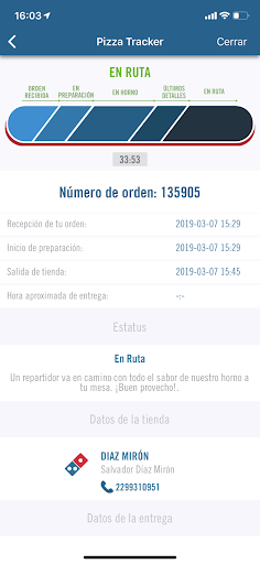 Pasando los 36 minutos, marco a la sucursal para ver qué solución me pueden dar, y me hacen esperar a que regrese el repartidor para ver que pasó.