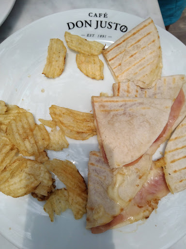Read moreEs una lástima que una marca de Café como Don Justo tenga tan malas cafeterías. La sucursal que es una isla en plaza las Américas en Veracruz es pésima, al ser una isla, al pasar y ver detrás del mostrador se ve sucio y muy desordenado, quise probar el café, el tiempo que tardan los meseros en atender es eterna, estuve a punto de irme pero el mesero llegó en ese momento, pedí un lechero, y llegó con mala presentación, el mesero no sabe de presentación personal además de que no sabe lo que vende pues ni siquiera sabía de dónde era el café, la comida pésima, nada recomendable, el club sándwich es pésimo, las sincronizadas sin sabor, la torta de jamon muy mala, el personal jugando todo el tiempo, los meseros están en la barra, se meten a la caja, se zapean, sale la persona que está en la cocina a seguir el juego golpeándose, los limpiadores que utilizan para las superficies por todos lados, pésimo servicio y pésima comida. No regreso y no...