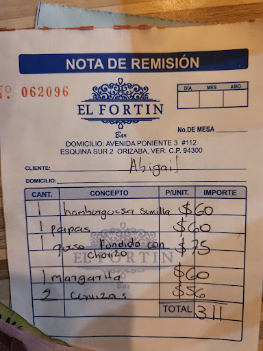 Read morePésimo lugar, comida horrible, servicio pésimo, pedimos un hot dog con papas resulta q no hay,cuando regresa la mesera le pedimos una hamburguesa con papas y dice ya vienen las papas. Resulta que nos cobraron todo por separado cuando la del error fue ella. Y se excusan diciendo que es su 1er día y otra mesera dice yo vi que les trajeron las papas grandes pero pues eso no fue lo que pedimos. Pésimo,nefasto servicio (y la comida no se diga hprrible la hamburguesa y el.queso fundido)al final el cliente termina pagando los errores de los empleados. No regreso jamás. Ni una disculpa...