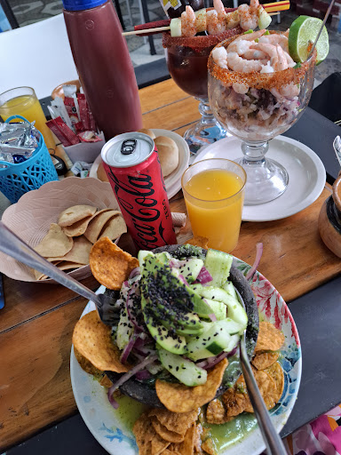 Un restaurante surtido de mariscos, con cortesías de la casa, salsas de mesa, atención y sevicio correcto, tomen en cuenta las fechas, por lo normal fin de semana está demasiado saturado así que vengan con demasiada anticipación puesto que a pesar de ser un lugar amplio tiene demasiados servicios que ofrecer y satisfacer buscando siempre lo más conveniente para el cliente. La comida demasiado variada, una sola tostada basta para satisfacer a alguien pues es grande y es una entrada muy rica, con su pico de gallo y su marisco fresco, o una tostada de minilla para aquellos que buscan algo más cálido, los Chilpacholes y caldos son demasiado considerados, bien servidos y con buen sabor, las mojarras es otra onda muy buena, es el plus, de lo más rico que he probado, la mojarra del desayuno es demasiado buena pese a ser solo frita, los chilaquiles que la acompañan son de buen sabor y no pican demasiado, los camarones como recomendación pueden ser enchipotlados o a la diabla si les gusta el picante, son de lo mejor, las bebidas son preparadas al momento, las micheladas de lo más ricas, no pican, tienen buen sabor y bien presentadas, el servicio es rápido entre semana, fines de semana suele ser algo tedioso puesto que entre los envíos, el servicio para llevar, freiduria y comer en el establecimiento puede tardar un poco. El ambiente es relajado, con música adecuada para el lugar, música en vivo los fines de semana y muchas cosas más, un lugar muy acogedor y que cumple con las necesidades del cliente si es que está dentro de sus posibilidades, un excelente lugar para ir en...