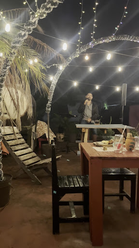 El lugar agradable es un área abierta entonces si eres friolento llévate un suéter. El día que fui había música en vivo muy agradable. El servicio bien los chicos atento la persona que está en la cocina subiendo Yahir atento pude platicar un poco con él y buena disposición. La comida si dejó mucho que desear no había hamburguesas de sirloin y nos ofreció la de carne de búfalo en queso azul (pedí la salsa aparte) por 150 pesos esperas una hamburguesas quizás un poco más preparada o en su caso que ofrezcan algo más caro pero mejor calidad. La carne era una lámina de carne con jitomate y mayonesa de acompañamiento tiene unos platas y manzanas en ajo (Todo los alimentos lleva entra guarnición). Lo que es la hamburguesa dejó mucho que pedir . Las alitas les faltaba cocción y se pido que las llevaran más cocidas las regresaron negras. Las aventaron dentro del horno y no les dieron vuelta solo las dejaron ahí el pretexto fue que por la salsa que ya tenían pero la Parte de abajo de las alitas no estaban chamuscadas . Creo que lo único rescatable fue el plátano asado con crema. Fuimos a este lugar por los comentarios pero la realidad es que la comida en esta ocasión dejó...