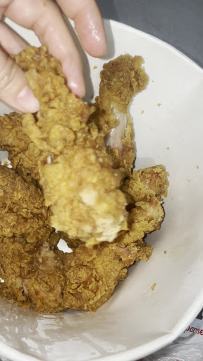 Si pides a domicilio te dan las piezas que quieresn y siempre dicen que no tienen bisquets. Hoy fui a comprar en el autoservicio y pedí un bucket de 8 piezas y pedí que me cambiaran las 2 piernas (le comenté que no nos gustaban las piernas) por pechuga pero me dijeron que no había pechugas extras que solo las que ya venían incluidas en el bucket, entonces pedí cambio de las 2 piernas por 2 piezas de costillar porque trae pechuga. A la hora de pagar vi el ticket y decía que me habían agregado 4 piezas pero me dijeron que era la promoción del día. Todavía me comentaron que el pollo iba a tardar unos minutos en salir y que solo había receta crunchy. Me entregaron todo en una bolsa y no revisé porque confié que me habían dado las piezas como las había pedido. Al llegar a mi casa para cenar vimos que nos dieron 8 piernas (súper chiquitas) y 4 muslos. Ni una sola pieza de pechuga ni los costillares adicionales que pedí. Esto ya me había pasado una vez que pedimos por Uber Eats y por eso decidí ir a comprar nuevamente pero yo creo que si vuelvo a comprar tendré que ir verificando pida por pieza cuáles ponen en mi bucket porque es increíble que te agarran de tonto en tu cara y te dicen que te van a poner ciertas piezas y no respetan ni las piezas que debe de llevar cada bucket. Aparte nunca tienen receta secreta, siempre tienen crunchy y ya y no sabe tan rico como la...