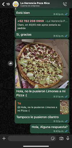 Read morePase una mala experiencia con su servicio a domicilio, Pésima atención por parte del personal, mi pizza no llegó con todos los ingredientes y al comentarles de los sucedido nunca obtuve una respuesta. Además el pedido tardó más de 45 min en llegar, por el precio de la comida lo que esperaría al menos sería un buen servicio. Definitivamente no recomiendo para nada la experiencia...