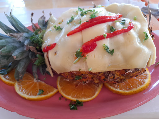 El lugar está pintoresco, principalmente la palapa de arriba en la que corre buen aire y se disfruta la vista del estero. El servicio es bueno por parte de los meseros, aunque si demoran mucho en traer alimentos y bebidas. Te dan ceviche de cortesía bastante rico, todas los totopos y aderezo que desees para acompañar. El cóctel de camarón sinceramente no me gustó, ni el vuelve a la vida. Los platillos tienen buen sabor, pero el mejor definitivamente es la piña rellena de mariscos, que si está para chuparse los dedos y accesible de precio en contraste a otros lugares. Las micheladas igual...