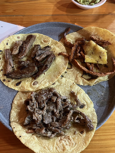 De entrada el lugar está un poco escondido si no sabes a lo que vas. Creo les falta algún letrero en el exterior. Fuera de eso, es un lugar sencillo y bonito. El servicio es muy bueno, todos son muy amables y serviciales. Yo pedí un taco de arrachera, un sirloin y unos tuetanos. El tiempo de preparación es el perfecto. La carne en su punto, jugosa y los tuetanos igual. La tortilla me gustó mucho pero creo la pondría un poco más pequeña o incluso más pequeña y doble, aunque supongo entender el porqué de su tamaño (la gente dirá que son caros si la tortilla es más pequeña aunque venga doble). Las salsas son muy buenas. La tatemada tiene buen sabor aunque es suave y la verde pica más y tiene un sabor súper intenso. Yo recomendaría lo comentaran con los comensales pues al probar la salsa verde al principio luego la tatemada no sabe igual. Una recomendación más, sus saleros están bonitos, pero yo los cambiaría. Tienen varias posiciones para la salida de la sal, pero al haber granos de arroz para que no se humedezca, si no se fija uno, puede ponerse el salero en los orificios más grandes y dejar caer granos de arroz. Probé un agua de Jamaica la cual estaba deliciosa y fresca. Respecto a los precios, considero están bien aunque en el límite. Pero en general el sabor y calidad excelente. Puede uno entrar con su auto y no estacionarse sobre la calle. Recomendables si lo que te gusta es la carne bien cocinada a...
