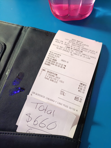Pésimo servicio. El día de ayer acudí con mi familia a comer. Cuando la mesera llevó la cuenta me dijo que era un total de $558, se me hizo extraño porque solamente llevaba la cuenta en la calculadora de su teléfono y el papel en donde hizo el pedido me llevó a pagar a caja en donde estaba la terminal y pagué. Nunca me enseñó el ticket de cobro y al hacer mi cuenta me salía un total del $463. Pues resulta que me cobró el 15% de "servicio" sin preguntarme si quería darlo. Le reclamé y su respuesta fue que eso cobran en esos lugares porque es un bar. Pero estamos de acuerdo que la PROFECO lanzó un comunicado en donde dice que la propina no es una obligación. Quiero aclarar que yo si quería dar más del 10% de propina porque siempre lo hago. Pero es una molestia que te quieran robar de esa manera. Si no hago la cuenta en su momento y dejo mi propina extra literalmente hubiera pagado más de la mitad del consumo. Al final la mesera se molestó, me dijo que supuestamente me había enseñado el ticket y en ningún momento fue así… y si me regresó lo que me había cobrado extra en efectivo. Si dejé propina, pero ya no el caso $20% más que me estaba robando. No volvería a este lugar definitivamente. Y si, el cadenero no fue...