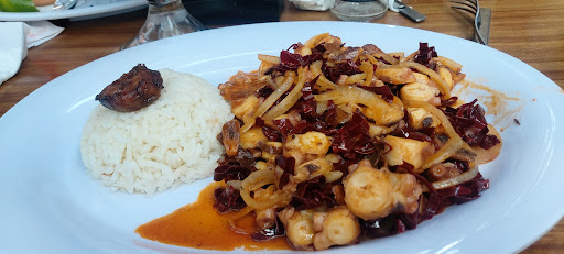 La comida está exquisita, te reciben con un consomé de camarón, tienen variedad de platillos, probe pulpos en su tinta, pulpos al ajillo y filete de pescado. Platos muy bien servidos y el sazón casero, con salsas muy ricas para acompañar.