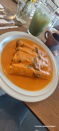 Desayuné con amigos, como cada mes, que probamos lugares nuevos. Esta visita ha sido de las más gratas experiencias al conocer un lugar local. Realmente, me quedé con ganas de más. Habría probado toda su carta. Es cocina regional, con algunas variantes que son sello propio del establecimiento. Como siempre suelo hacerlo, solicité la asesoría de quienes están al frente del lugar, acerca de lo que a ellos, personalmente, les gusta más. La recomendación del chef fueron las enchiladas de nata. Este platillo en particular es de mis favoritos. Al llegar mis enchiladas a la mesa, noté que no traían queso, PERO supe que era por una buena razón: No les hace falta. La salsa, por sí sola tiene todo lo que se requiere para disfrutar el platillo. El queso le habría quitado ese brillo y belleza que, por sí misma tiene. Me encantaría que la tortilla (que viene frita) tuviera la salsa también por dentro. Mi amigo pidió omelette, el cual estaba perfecto y esponjoso. Mi amiga pidió una especie de enmoladas rellenas de plátanos fritos. El mole es de la casa, dulce y, extrañamente, sin picor, pero con muy buen sazón. Tomé el chocolate almendrado y el agua de temporada, que era de verdolagas (tenía un toque de guayaba), estaba deliciosa y fresca. Probamos un aperitivo de berenjena, también delicioso. Todo estuvo riquísimo y, honestamente, me quedé con las ganas de probar más cosas de la carta. Hay desayuno y comida. Son secciones diferentes de su carta y sí, son estrictos con esto. Nos atendieron muy bonito y de manera muy amable y paciente. Ya...