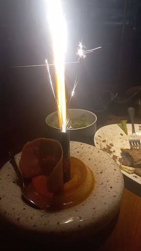 Read moreLunes (ayer) cerca de las 2.30 pm, poca clientela, no tienen menús impresos, tiene uno que descargar en el teléfono, lo cual me es muy irritante, nada como tener en tus manos el menú impreso, en lugar de tener que "navegar " en el teléfono. Ordene como "entrada" tacos de salmón, que demoraron bastante, cerca de media hora, más que de entrada, pensé me los traerían de salida. El salmón rico, buen sabor. Tuve que pedir cubiertos, no tenia con que comer. Ordene medallones new York, con guacamole y chicharron. El mesero mencionó varias veces que estaban cambiando el menú y tenía que checar, varias veces, si estaba disponible lo que pedía (? si no estan en condiciones, no deberíande abrir). Llegó el medallon en un plato metálico ardiendo, lo pedí medio rojo, pero por el plato metálico ardiendo, en unos minutos, estaba totalmente cocido, a mitad de la carne, estaba seca y en extremo dura, como suela de zapato. El guacamole encima del plato ardiendo se calentó horrible. Guacamole caliente como sopa!!!??? Deberían explicar eso de antemano, pues no es normal comer guacamole caliente como sopa. El salmón estuvo bueno, la carne con guacamole caliente y chicharron HORRIBLE. no estoy seguro de regresar, definitivamente el no tener menús impresos (,lo pedí y me dijo el mesero que no tenían), y la horrible experiencia con la comida, no es para pensar en volver. Sin querer hacer un problema, le mencioné al mesero, que la carne estaba en extremo dura. Pagué y me fui. Mi propina...