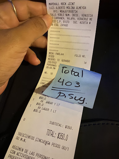 Read moreNo puedo describir lo enfadado que estoy con la calidad del servicio. Para empezar, se vieron insistentes queriéndole vender alcohol a mi novia, cuando ella había pedido una jarra de jugo, pero no, sólo querían vendernos bebidas alcohólicas. A su vez, compró unas palomitas, que lamentablemente llegaron quemadas, y muy saladas. No nos parece nada justo que traten así a su clientela. La música nos quedó a deber mucho. Escuchamos los mismos temas de siempre, pero lo que NO NOS GUSTÓ fue la banda "Los Parker", o algo así. Llegaron CASI 2 HORAS tarde, no prepararon sus instrumentos (sonaba más la música que la voz), y la voz era inaudible. Sí van a seguir trayendo a esas bandas a tocar, mejor que dejen un reproductor en aleatorio. Me siento decepcionado, porque de Marshall siempre esperamos lo mejor, pero esta noche fue de lo más...