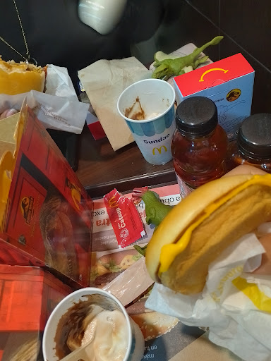 Ya de ahí me fui con mi cajita feliz a buscar una mesa donde comer agustamente, pero por mis necesidades en ese momento, sí o sí buscaba una con enchufe para conectar el cargador (tenía poca batería en el celular). Había un lugar pero estaba ocupado por trabajadores del local y esto sí me disgustó, ya que estas instalaciones como las mesas deberían ser destinadas al comensal. No sé también si haya una zona adecuada de trabajo para esos empleados, pero de no haberla, por favor, quien esté a cargo de ello, proporcionen, debido a que esto es una mejora a favor de los empleados y de los clientes; ellos tienen un lugar privado donde trabajar mejor y nosotros una mesa extra donde hay enchufe para cargar el celular. Por otro lado, creo que debería haber más contactos en el establecimiento. No en todas las mesas, solo unos cuantos más.