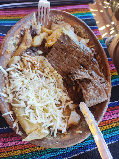 Para empezar la comida es muy picante, todo lo que lleve salsa pica demasiado. Yo pedí una tampiqueña y la cecina está muy simple, las entomatadas estaban secas y tenía muy poquito tomate, las papas gajo estaban muy simples al igual que los frijoles. También pedimos unos tacos dorados y nos los dieron sin verdura (sin Lechuga, ni tomate, ni crema). También se pidió una panza y la carne estaba dura. Finalmente decidí pedir un postre para llevarme una mejor experiencia pero desafortunadamente ya no habían, así que solo pedí un pay de queso y para mi sorpresa tampoco estaba bueno.