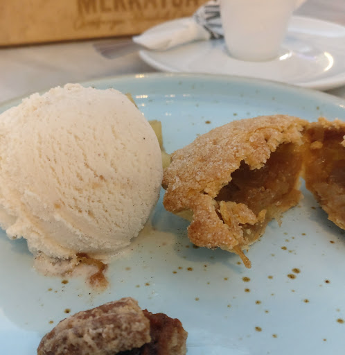 La atención del personal es muy buena, están atentos y anticipan tus solicitudes, todo ello sin ser invasivos durante la degustación de los alimentos. Me llamó la atención un interés en particular de crear una atmósfera de "buena experiencia". Por ejemplo, ofrecieron una cortesía o aperitivo y también se preocuparon por el tiempo de atención. En mi caso tuvieron una demora un poco más allá de lo previsto con el platillo y ofrecieron un plato de cortesía de jamón y queso para espera mi platillo (en la fotos). el ribeye que pedí llegó muy bien presentado y al punto solicitado, una carne suave y jugosa. La sala que lo acompañaba un poco excedida de sal, una lástima pues invadía el sabor de la carne. Creo que es necesario trabajar en la salsa e incluso evitarla. El postre bien presentado, un poco de decepción con el pay de manzana pues prometía un relleno jugoso o abundante y en realidad estaba disminuido, un poco compensado con la manzana picada a la canela como guarnición. La nieve de vainilla muy por su textura y un sabor. La experiencia es muy buena, los ingredientes de buena calidad, me parece que tienen un gran potencial para mejorar....