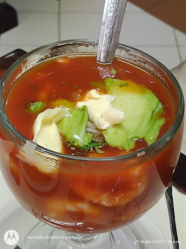 Read moreYo prove la cazuela de mariscos( cazuelita) y la he comido en córdoba ver, y pensé que la cocinaban igual pero en lugar de que lleve queso manchego aquí le pusieron queso de hebra en cuestión de sabor le doy un 8 solo, me dieron una tostada de cazón no me gusto,es muy poco lo que sirve era mas caldo, también prove el coctel y le pusieron nada de cilatro ni cebolla una rebanadita de aguacate la verdad el camaron no sabia fresco pero le doy un 7 al coctel, también como fue un lugar recomendado pensé que si estaría super rico. Como referencia al pedir coctel te dan una tazita de caldo y arroz un filetito de pescado empanizado el filete estaba rico.