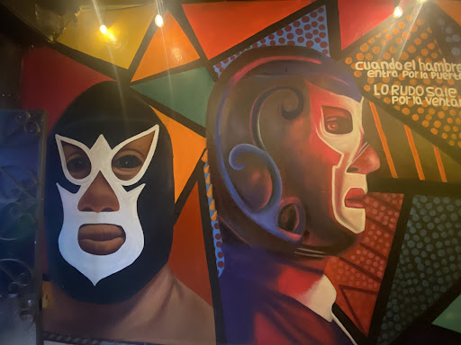 Read moreVisite el lugar ya que había algunas recomendaciones por instagram, el lugar no es muy difícil de llegar, al contrario es de "facil" acceso, hay donde estacionarse en la empedrada. El lugar es muy pequeño, fui con un grupo de 8 personas y ocupabamos casi medio local, el servicio del mesere muy atento y amable, el detalle es la comida, el "bufete" como es por rondas tardan demasiado entre ronda y ronda... yo soy de las personas que se dejas pasar mucho tiempo entre platillos pues ya no me dan ganas de seguir comiendo. Me lleno con lo poco q comí, pero creo es problema personal. Pero desde que llegamos ordenamos y tardaron un poco en la primer ronda, para la segunda ronda pasaron casi 20 min. A la tercera para los que siguieron comiendo paso más de media hora. Estuvimos casi 2 hrs en el lugar. El costo es accesible pero la hamburguesa "brioche" más parecía Bisquet, pan seco... y duro... las alitas que valen la pena son las de Tamarindo Habanero, la de piña esta insípida, la bbq nor.al esta regular... son las que probé. Al ser un lugar temático pensé que tendría más adornos en cuanto a lucha libre, en la pantalla deberían poner ya sea videos musicales o luchas nuevas y viejitas pero no... había película... En general la comida no está wow, pero a ese costo pues que puede uno pedir... el servicio del mesero es bueno, el...