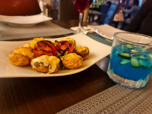 Comida A simple vista se ve la calidad de los ingredientes, el sabor es muy bueno, casi siempre pedimos ensalada y pizza al centro y por separado alguna pasta o corte. Esta vez probamos los portobelo rellenos de carnes frías. Excelentes como entrada! Las bebidas son básicas, naranjada, limonada y refresco. Los vinos y el clericot son buena opción para acompañar.