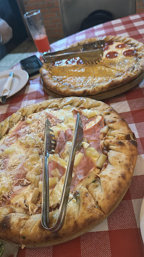 Aunque el mesero fue en parte amable, nos hizo comentarios tipo que estaban tardando algunas cosas porque tenían pedidos de aplicaciones. Cosa que no nos tiene que decir ni nos tiene que importar. Yo estoy en el establecimiento, tu urgencia soy yo, no las aplicaciones. También nos hizo ver qué "porque no pudimos todo junto" estuvo mal. O sea que no se me puede antojar algo después porque está mal. La comida estuvo más que bien en porciones. La verdad es que sirven mucho. La pasta tiene buen sabor, la pizza tiene un sabor plano, no se le siente nada. No se distinguen los sabores. Lo comento porque dice que algunas pizzas son su especialidad, especialidad porque tienen ingredientes que quisieron ellos? O porque son especialistas en pizza? Porque la verdad es que como lugar de pizzas, no vuelvo a pedir una ahí. Pedí una copa de clericot, estoy seguro que no tenía vino, pues no sabía. Después pedí una jarra, y efectivamente sí tenia y sabía a vino. Solo ellos saben que hicieron. El lugar está muy calmado, buen ambiente. Por el precio al final (no es para nada caro a los precios de hoy día), yo creo que preferiría ir a otro establecimiento, tipo franquicia o algo, llámese Olive Garden. Porque viene siendo más o menos el mismo precio, pero allá todo está climatizado hasta el baño y el ambiente también es muy calmado. Y pues por unas letras led colgadas pues la verdad es que no se le debería...