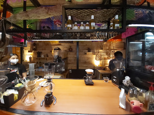 En el momento de llegar queríamos sentarnos en una mesa que se encuentra arriba pero había 1 ocupada, por lo que por COVID se tenía que guardar la distancia. Nos sentamos en la parte de abajo. El trato del mesero fue buena era muy amable, es un ligar muy reducido y a pesar de serlo uno tiene que buscar al mesero para ordenar más o solicitar azúcar (solo dan 1 sobre por café). Ordene un chai latte que la verdad no lo recomiendo, lo que me dieron fue una taza de leche caliente no sabia a NADA. Por lo que lo tuve que dejar. Ordene un lechero. Para mi gusto el café lo hacen muy fuerte o cargado a pesar que lo combinaron con leche. Talvez regresaría por el buen trato, pero por las bebidas de ahí NO. Para ser mi primera visita fue la última. Al finalizar las 2 mesas que estaban abajo estaban ocupadas y eso de la sana distancia jamás se respetó a como nos lo mencionaron al inicio. Y si quieren un comprobante de pago, lo hacen a mano no dan un ticket impreso por lo que medio pena...
