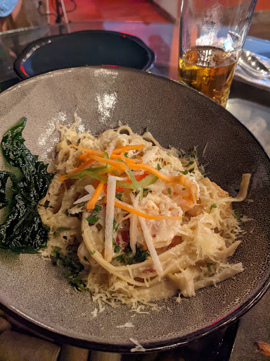 👍Lo bueno El lugar es amplio y elegante, con luz tenue y cálida, por lo que es perfecto para una cena coquetona
