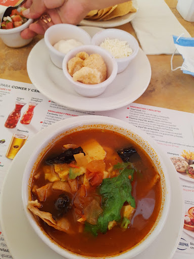 La comida excelente, pero nos tocó una mesera que en verdad nos arruinó la cena. Desde el momento que llegamos nos trató de forma brusca, cuando mi hijo me preguntó A MI por qué no traía crema batida su malteada, ella interrumpió nuestra conversación para decirnos que no había. Ella ni siquiera estaba cerca de nuestra mesa en ese momento y no tenía por qué meterse. Pedí una sopa de tortilla y al servirla se le cayó el traste del chicharrón, derramando su contenido. Esta mujer CON LA MANO DESCUBIERTA recogió los pedazos y trató de dejarlos en la mesa como si no hubiera pasado nada. Cuando le pedimos que lo cambiara se enojó y regresó a la mesa con una plasta de gel en la mano para "enseñarnos" que cada vez que sale de la cocina lo utiliza. A mi no me interesa si se pone cloro, el hecho es que no debía haber hecho lo que hizo. Después, estábamos tomando café con pan y al levantar los platos sucios de la mesa se llevó el pan aún cuando no habíamos terminado. En verdad no me quedaron ganas de volver a ir, aún cuando es un lugar...