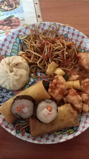 Para empezar, hay una variedad enorme de comida, nunca fue tan real el "como lo que puedas": tienen carnes, verduras, postres, ensaladas, diferentes salsas, etcétera. La verdad había cosas sumamente exquisitas, como una especie de reiletes, el pollo agridulce, los fideos. Aunque, también había unas cosas insipidas, como el dumpling, la costilla, y el ranch ese si no lo prueben, está como rancio.
