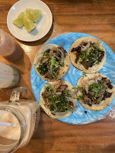 Por las noches acaban de meter taquitos 🌮 de tripa y de asada. La verdad muy muy ricos.