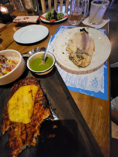 Algo que me encantó es que dejaran pasar a mi perrito en su carriola, ya que generalmente en Villahermosa hay pocos lugares PET-FRIENDLY, con eso ganaron mi corazón. El servicio de mesa consta de totopos, 4 distintas salsas y un caldito de camarón servido en un mini tarro de peltre, cortesía. Tienen una barra bastante amplia física e intangible, cuentan con tragos de autor con ginebras y mezcales hasta donde recuerdo y en la manteleta viene la carta que por cierto es muy extensa. Pedimos una ensalada de atún sellado, papas gajo (que me parecieron muy grasosas), guacamole, tostadas de ceviche (vienen dos servidas en chips de malanga) las recomiendo, pero un imperdible puede ser “Camarones jamaiquinos”, servidos sin piel, cocinados en una salsa de jamaica dulce con un ligero toque de picante y en el centro puré de camote, verdaderamente exquisitos. El postre fue un chessecake divinamente montado aunque parece más un mousse que un chessecake, bueno sin llegar a lo extraordinario. El servicio fue muy atento y cuidado, gracia a nuestro mesero Pablo. No es un lugar barato, pero me parece en relación a la calidad de los platillos, la atención y el lugar, un buen precio. Sin duda es un lugar al...