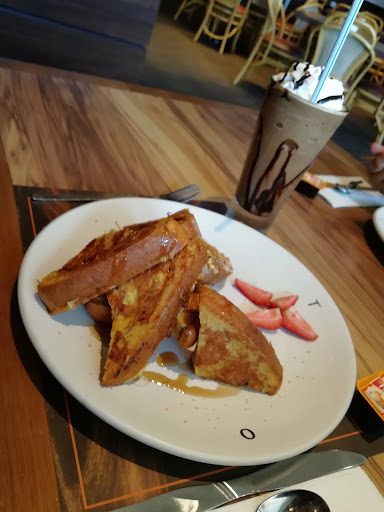 Read moreEs uno de los lugares que dentro de esta Plaza se distingue por su comodidad y la calidad de su servicio. El capuchino y las conchas son de las delicias que puedes consumir en una tarde-noche de plática con amigos. Tienen una extensa carta de alimentos, donde cualquiera tiene el sello de la casa, todo con mucha calidad. El estacionamiento es muy amplio, porque es de la plaza. Si acaso llegas a pie, hay un sitio de taxis que está a escasos quince pasos de este restaurante, así que no hay porque no llegar. ¿Los precios? Bueno, comer ahí puede costar por persona mínimo unos $180 pesos, así que hay que ir preparado para disfrutar del tiempo destinado para consumir los alimentos. ¡Ah! Y tiene un área (pequeña) para que...