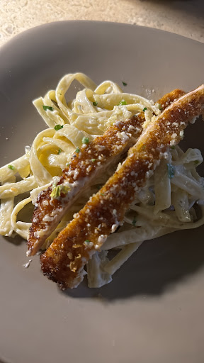 Elegimos pasta Alfredo, con pollo empanizado. La porción es grande para compartir 3 personas o 2 si comen mucho. La decepción fue que la pasta Alfredo sabía como agua, no tenía sabor y sabía mal, sinceramente.