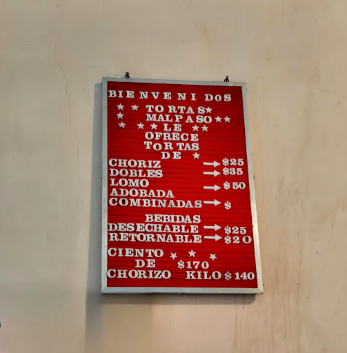 Read moreFuimos a comer, el lugar es céntrico, sencillo pero limpio. El señor que nos atendió fue muy amable, nos dio opciones para pedir para los niños y nos preparó la comida de ellos en el pan tradicional para que fuera más sencillo para los niños comer la tortita. Tenían tortas de chorizo, adobada y lomo $25 Pedimos tortas de chorizo que son las originales, y a los niños les preparó de lomo pero en el pan tradicional de la de chorizo, a los niños les encantaron y pidieron otra. Te dan de complemento chiles curtidos. Son unas tortas chiquitas un adulto se come entre 2 y 4 depende de que tanto coman. Son de rico sabor con sus 3 bolitas de chorizo muy rico, son una tradición que hay que probar las famosas tortitas de Malpaso. Si lo recomiendo y si...