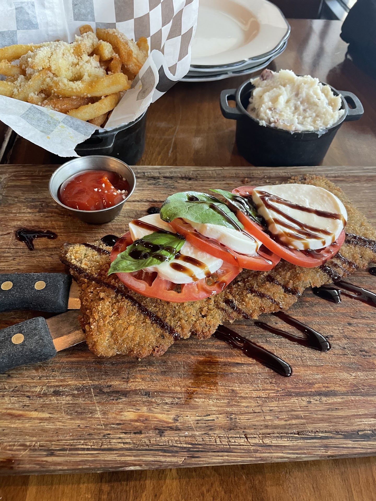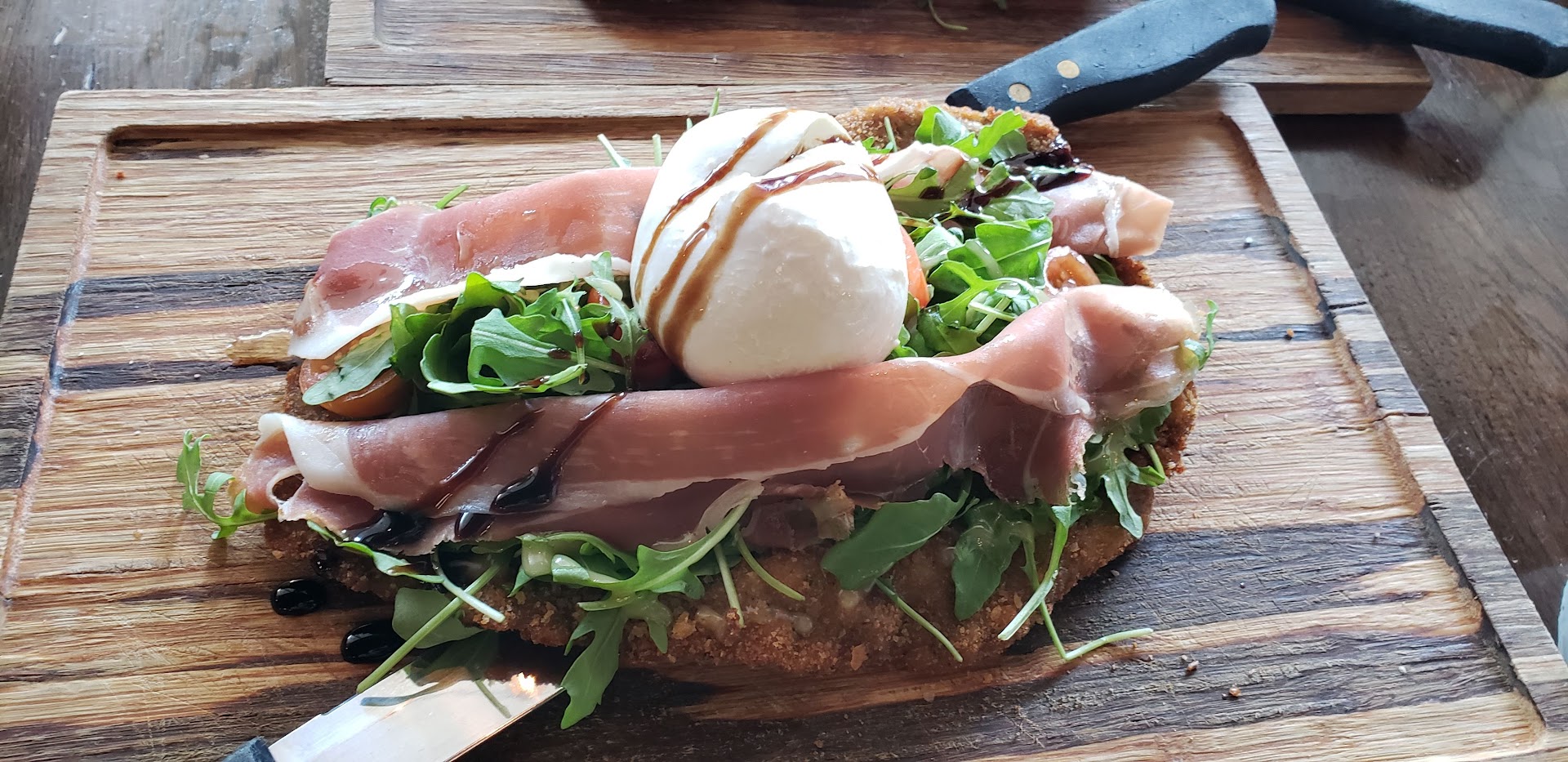 We ordered three milanesas to share amongst ourselves: Chicken Pepe: pepperoni, fresh tomato sauce, and mozzarella cheese Eggplant Edward: arugula, avocado, and cherry tomatoes with vinaigrette Steak Bianca: mozzarella burrata, cherry tomatoes, prosciutto di parma and arugula with house dressing All three were tasty in their own right, but I was surprised by how much I enjoyed the eggplant milanesa and thought that I could return here for that vegetarian meal without thinking twice!