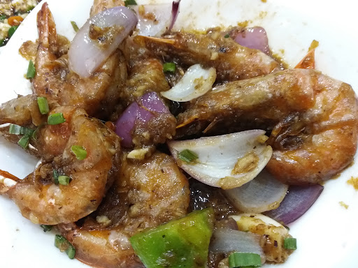 You will have a hard time to find parking lots near the restaurant. The dining area is divided by two sections with air condition and without (only fans). I ordered Prawn with Black Bean Sauce and Baby Kailan with Salted Fish. After ordering; the drink came after 2 min followed by Kailan, 8 min and Prawn 9 min respectively. The lunch crowd was not too crowded. Actually I had a purpose dining here because I want to compare the food serve here with 'HOMST', another chinese muslim restaurant competitor. It was my first time coming here. The prawn was medium size and I ordered the small portion (about five pieces). The black bean sauce was on a high side salty. As it was salty, it killed the taste. The baby kailan gravy was thinly watery and the vegetable was not so crispy. I was upset as the taste was not as delicious as I had expected comparing it to HOLMS restaurant. My expectations was disappointing. In comparison with 'HOMST', the taste...