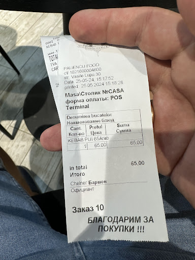 Read moreAm gustat în mai multe locuri kebaburi din Chișinău,însă din acesta vara când am gustat de la Dima kebab din restaurantul de pe strada Vasile Alecsandri am fost șocat de kebabul arab care era la 65 de lei 500g și de lavașul foarte gustos și carnea la fel,dar mai ales sosurile din kebab erau extraordinare. Pot zice că mănânc din acest restaurat deja de 9 luni și sunt uimit întodeauna de gustul kebabului. Insa meniul de 100 de lei de pui arab este unul dintre preferatul meu. Nu-i cum zic ceilalți că cartofii sunt reci,tari, mici și uscați,și puțină carne ei se înșeală amarnic. De când s-a deschis restaurantul pe strada Vasile Lupu 30,este amplasat foarte comod pentru oameni și ca au o terasă la aer liber. Kebabul s-a schimbat foarte mult mai ales lavașul,este acum diferit și are un gust mai formidabil. Am recomandat acest kebab prietenului meu și el este mulțumit ca i-am recomandat acest restaurat și de atunci cumpără doar de la Dima kebab. Mereu când am posibilitatea de a pleca să mănânc un kebab întodeauna plec la Dima kebab,așa ca recomand și pentru alții să guste acest kebab. Dacă nu le place și nu au tăria de caracter să mănânce un kebab bun lasă să plece la Star kebab sau Twister kebab să mănânce unul mai rău. Mult succes înainte și să vă extindeți pe mai multe sectoare...