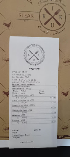Read moreThis is the definition of a hidden gem. I was told about this restaurant and i still had a hard time finding it ( it’s right underneath the MAIB bank). If you drive to this place, you will have hard time finding a parking spot. However, the food and the service were amazing. I tried fillet Mignon which comes with pesto sauce and veggies and it was perfection. My friend tried turkey breast with apple and some type of sauce which was scrumptious. Another friend tried cobb salad which was delicious....
