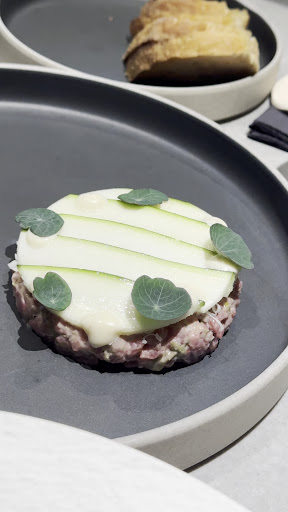 Such a disappointment for all the hype and prices: there's a lot of work to do to improve the food here. The intention is clearly there to bring fine dining and original recipes, but so far the food fails to deliver: vey unbalanced dishes with flavours that do not work well together or with completely fade tastes: the eggplant wasn't cooked well enough, plus the caramelized syrup was very sweet for the parmesan cream to be sweet again - such a lack of balance in this dish it made me sad the cooked salada Romana might have been the best dish of the evening. the artichoke was ok, not wowing, usual marinated artichoke with the same parmesan mousse on top that I felt was not balanced again and slightly lousy job. For mains: the halibut was tasteless, those fish eggs looked juat cheap and taste wise fade and shouldn't have been there. The sauce was probably the only ok element there and that helped a bit the dish, but it didn't save the dish. the calamar tentacles were soft but nit fresh, taste was fade and the salad combo with haloumi felt like it could have been beggee for a calamar salad than the best side dish for a warm serving. dumplings/ravioli with potato filling were probably the simplest and the tastiest, or theh at least had flavors. Not sure toping up potato ravioli with fried potato decoration was it, but I'll leave this untouched.