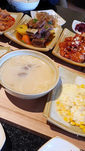 They served many banchan (side dishes), but each came in a huge dish with barely any food inside. It looked generous until you realized the portions were tiny and mostly decorative. The meat dishes were okay, but nothing memorable. What really killed the mood for me was one staff member a security woman who appeared completely unprofessional, fat like a saturn, with her shirt riding up and back exposed as she moved around the dining area. It was enough to take my appetite away completely.