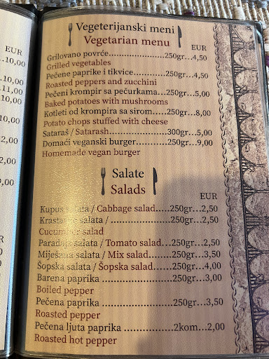 We had Sataraš, French fries and Roasted Peppers/Zucchini. The sizes were allright, the prizes are high for Montenegro standards, but cheap for european 'tourist mountain town' standards. Sataraš was the best tasting one but the rest was allright as well.
