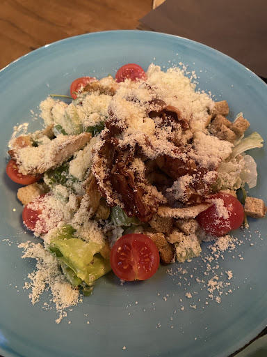 My Caesar salad was served with bacon and it wasnāt mentioned in the menu. The waiter Lukac made a scene at me when I asked him about this bacon and JUST LEFT spreading his arms and saying that he doesnāt care and itās my fault that I ordered it, Iāll pay for it. I asked for a manager at the bar counter, Lukac went there and laughed with a lady. Then nobody came to our table. I once again asked about this bacon, Lukac tried to find it in the menu (not successful try) and said itās served with bacon everywhere in Montenegro, which is a lie. So nobody wanted to bring me the real Caesar salad. I asked him twice about taking the bacon out of my place. He agreed with an angry and annoyed face. I wish I never ordered this salad. The bread rusks were disgusting, the chicken was dry. The dessert was very sugary but looked really nice.