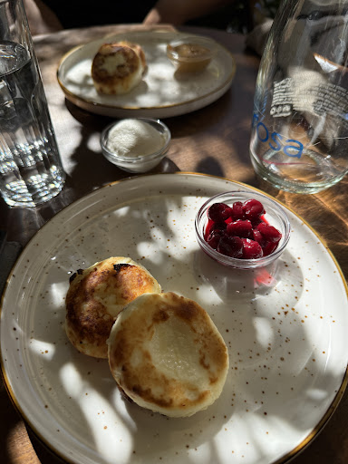 We ended up getting the potato Vareniki, 10/10 delicious and homemade Sirniki with caramel and cherry sauce were very enjoyable And beef stroganoff.