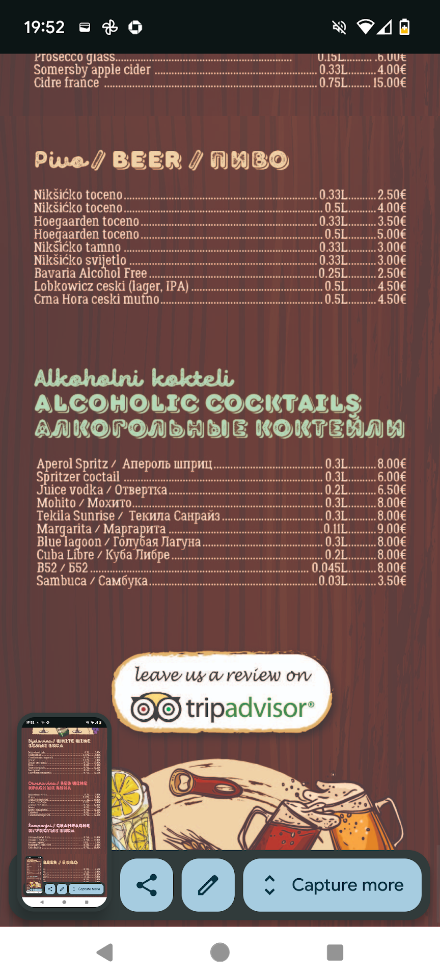 Read moreThis place really doesn’t deserve the rating it has. Portions are much smaller than what’s written in the menu. For example it shows lamb is 400grams. It has 400grams only if they count the plate as well, not even then. Extremely slow servers. I needed to ask for water 3 times. The server never came to check on us and ask if we need anything. We waited for the food for a long time, even for the appetizer. Don’t get fooled by good reviews. Something is off with them. Serves dont speak Montenegrin nor English, only Russian. Maaaybe a few words of Montenegrin. Really disappointed by the food and service. For sure won’t be back and you shouldn’t waste your time nor money on this place because these reviews are fake for sure and we got fooled...