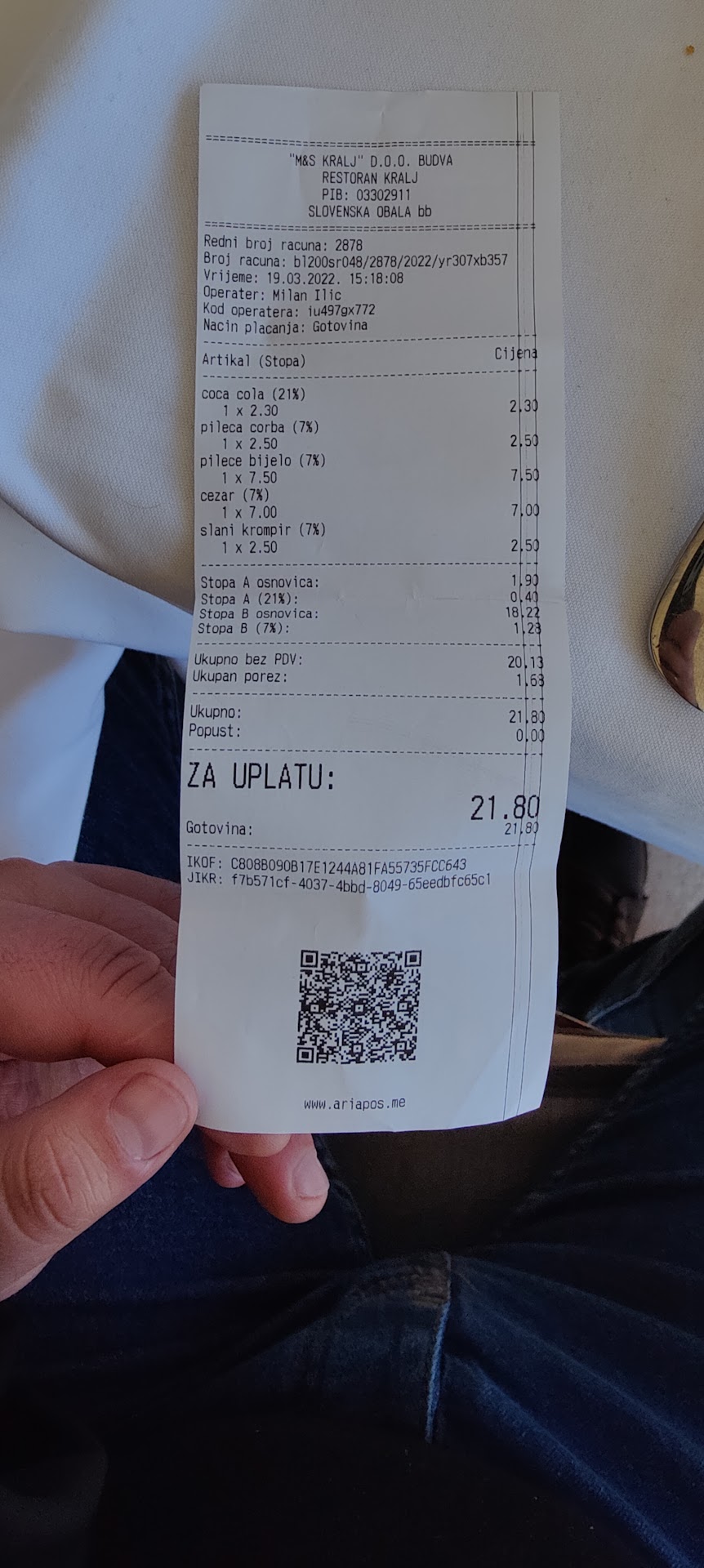 Read moreJust back from Budva and visited this restaurant basically as i wanted to taste their lamb. Well i did and it was crap. No effort was made to remove the fat from it and it certainly could not be called Roast Lamb it was more like stewed Lamb. As regards the vegetables they were not fresh vegetables. They were frozen and way overdone. For starters they have a tomato salad for €4. I asked could i have a bit of onion on it and what i got was a Beef Tomato sliced in 4 pieces and a whole onion. Charged me €8 which was a rip off. When it came to paying the bill i wanted to pay by card and was told that it may take 10 minutes or so for the card machine to work and they would prefer Cash. I told them that i was most disappointed to be charged €4 for the Onion and was told that some restaurants charge for Pepper and Salt which is total nonsense. The restaurant seems to be the meeting place for some of the locals who come into the back of the restaurant and have a few drinks and a smoke. The hygiene of the waiter left a lot to be desired.Again not something that should happen in a restaurant. We left very very disappointed with our experience and no wonder this restaurant was slack while...