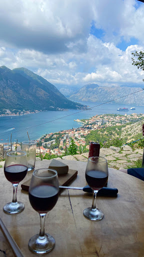 This rustic spot features a few tables and chairs with a stunning panoramic view of Kotor Bay, along with two toilets for visitors. He serves up simple but delicious fare: local bread, cheese, and prĆĄut (prosciutto), along with cold beer, wine, and of course, very proudly, his homemade rakia.