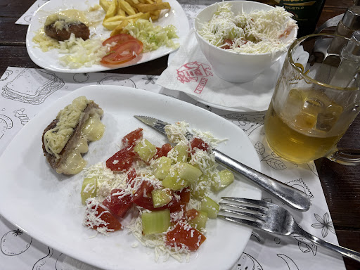 Read moreThis place is wonderful. The food is delicious, the servings large, and very well priced. The waitress with the glorious curly hair speaks great English and is very helpful. Everyone else we encountered (over three meals) speaks enough English and is helpful enough for us non-Montenegrin speakers to get by. They take card payments. The toilet I used had a seat, toilet paper, soap and was passably clean, if not sparkling. It’s on the main road and there are no bay views. Cheap and cheerful and an easy walk from the old town. Highly recommended for a tasty, good value meal. The photo is of the stuffed burger and šopska salad (delicious! These were shared with my husband due to the large...