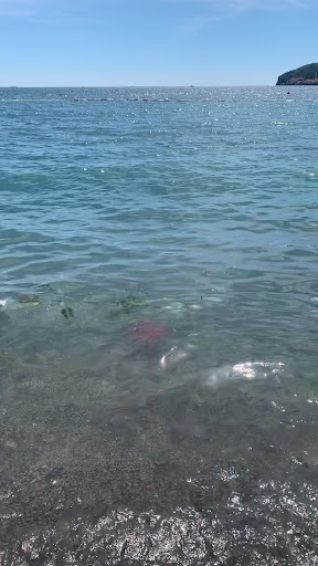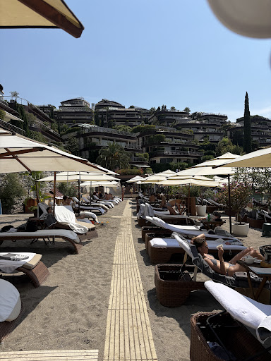 The setting is breathtaking — a true paradise with pine trees, rocky cliffs, and a stunning sandy beach. The overall atmosphere was both peaceful and luxurious, perfect for a relaxing day by the sea.