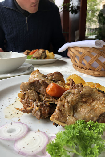 It's perhaps the least popular. While the other restaurants are busy, this one was usually mostly empty. One reason is the fact that the moment you approach to look at the menu, the waiters--particularly the eldest one (more about him later: see photo)--start hassling you to come in and eat. The other places to eat along the town's single street leave you in peace to make your own mind up. It's off-putting to be pressured before you've even set foot inside.