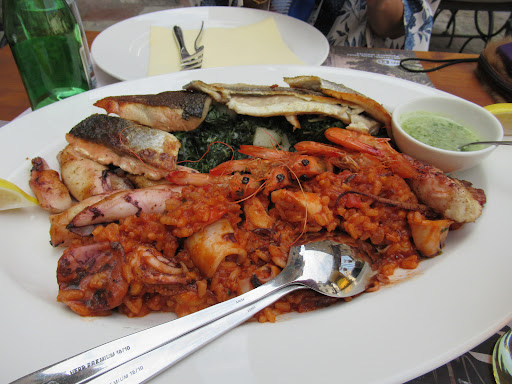 We were welcomed in by a gentleman who spoke great English. He gave us a helping hand with our pushchair, and then offered to heat up our daughter's bottle. Very kind of him. He also offered to help us choose our dishes, but my husband had been desperate for octopus since we'd arrived, and I for black risotto, so we had no problems to decide!