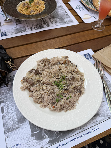 We ordered four different dishes and not a single one was prepared properly. The risotto was completely dry, flavorless, and tasted like someone had sprinkled Vegeta on top as an afterthought. The steak was old, unpleasant both in taste and appearance, with the only redeeming touch being a few random greens tossed on the plate for decoration. The carbonara was basically pasta with scrambled eggs – nowhere close to what carbonara should be. To make things worse, the calzone arrived smothered in cream that wasn’t even mentioned on the menu.