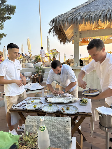 Read moreThe food was good, though pricey. It took around 30-40 minutes for the food to arrive, though we were with a 3y old. They asked us for 190 euro for 2 sunbeds and didn’t mention we could have a bath in the sea without renting the sunbeds. The music was too loud, club like, could’t hear the sea. One of the girls at the reception was very arrogant. There was a fight between the waiters and our waiter wasn’t too fast responsive. Parking is 2 eur/hour. We spent 3 hours just to eat there. Also I found a piece of plastic in the honey cake. We spent 140 eur for a feta and watermelon salad, tzatziki with pita, sea bass fillet from the children menu and a main dish with chicken; 2 fresh juices with watermelon and pineapple- which didn’t have 300 ml as advertised in the menu- i know bc we have the same glasses. For dessert we had honey cake and ice cream. It’s nice for the kids because they are taking you to the location with a small electric car. If you do not stay in the complex, it’s not a good idea...