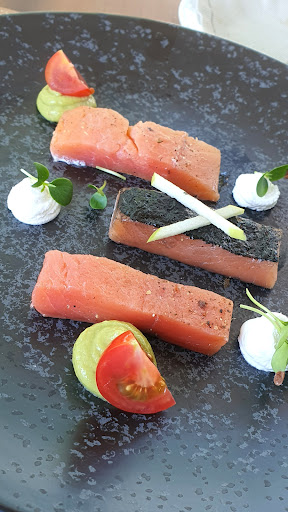 Read moreRestaurants in fancy hotels can be antiseptic enough to render them covid free. We're staying here, and we're as hungry as a marooned Russian soldier. We took the risk, and were happy to break the empty space, that would otherwise hold around 200. The service was fine, and the meals were OK too...why the low score? I love a good promise. The trepidation that shudders through my bones, as I wait to see if I'm getting respect or the real estate agent treatment. I couldn't believe that they'd write the grams of fish you'd get in a portion. A first in my aged, creaky existence as a restaurateur. Imagine my reaction to the promised 200g of salmon 3 ways, actually being around 120g. Or thr promised whopping 350g promised for the sea bass "steak" actually being 180g (both generous estimates). This was a promise about how much we would get to eat when we were hungry...but hey, look at the view...position...